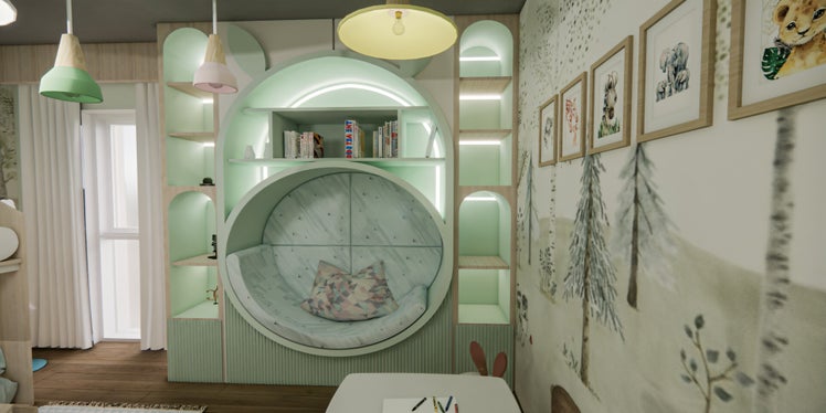 - Bunk bed – A sturdy and secure structure with protective railings, designed to meet the needs of a neurodivergent child.